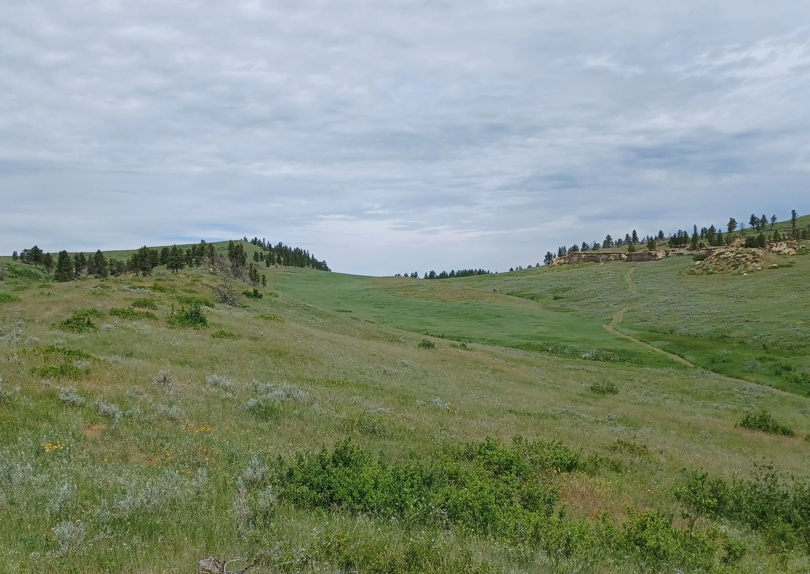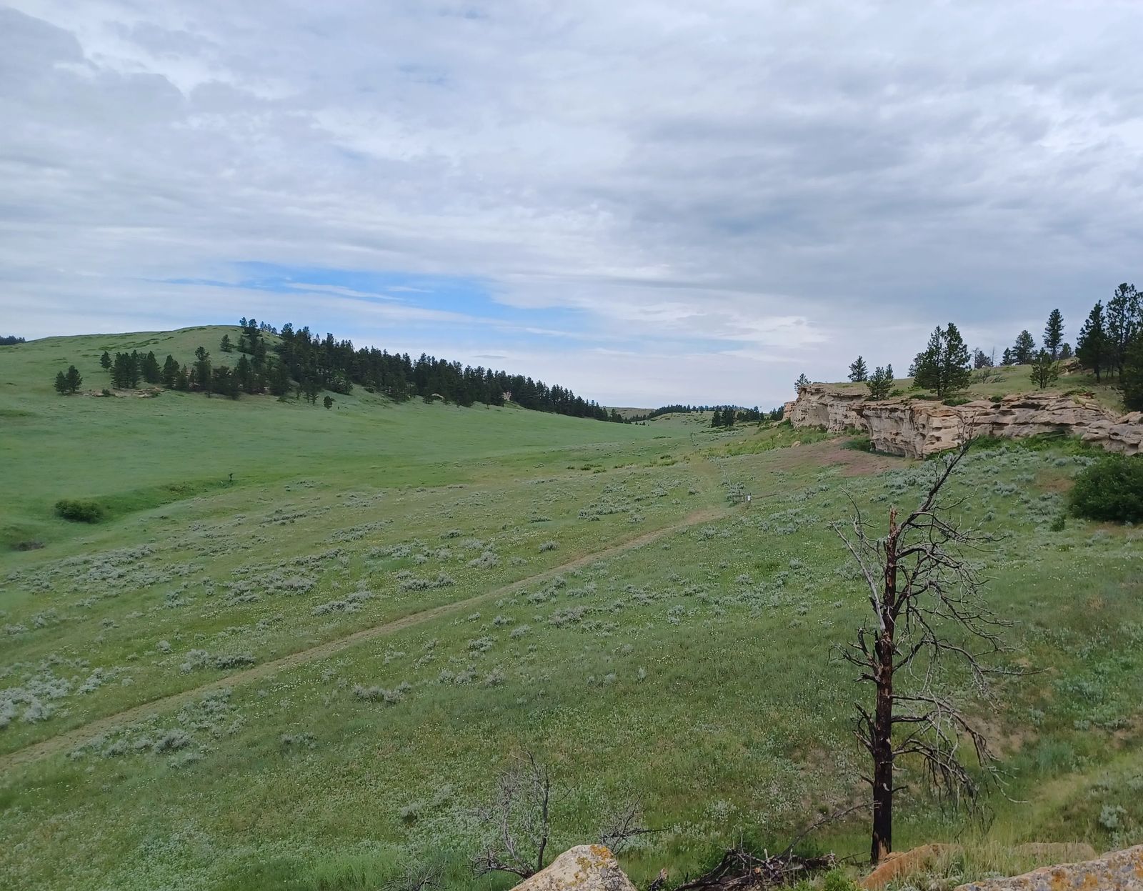 The Cheyenne remember this battle as “where the girl saved her brother.” This took place in “the gap,” which is between the buffalo jump (cliffs on the right) and the hill on the left. The second photo shows the gap from near the soldier’s positions, and the third shows the gap from near the buffalo jump. It resembles a golf fairway … one where there were lots of bullets flying, and no cover.